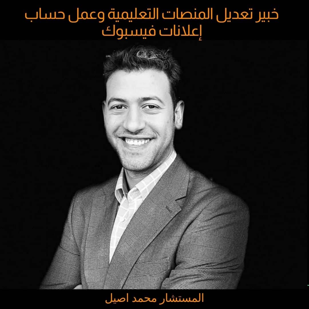 المستشار محمد اصيل خبير تعديل المنصات التعليمية وتصليح الأخطاء الموجودة بها وعمل حساب إعلانات فيسبوك احترافي وربطه بالمنصة التدريبية ومساعدتك بأطلاق اول حمله متابعين