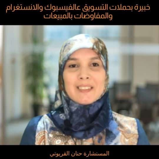 المستشارة حنان القريوتي خبيرة بحملات التسويق عالفيسبوك والانستغرام والمفاوضات بالمبيعات